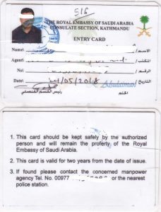 Note: Only the Manpower Companies who are authorized and provided with Entry Card from the Saudi Embassy in Kathmandu are eligible to submit the passports for visa stamping. Saudi Consulate Kathmandu has issued Entry.